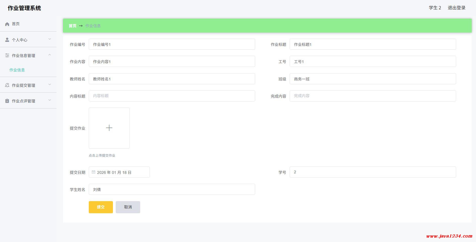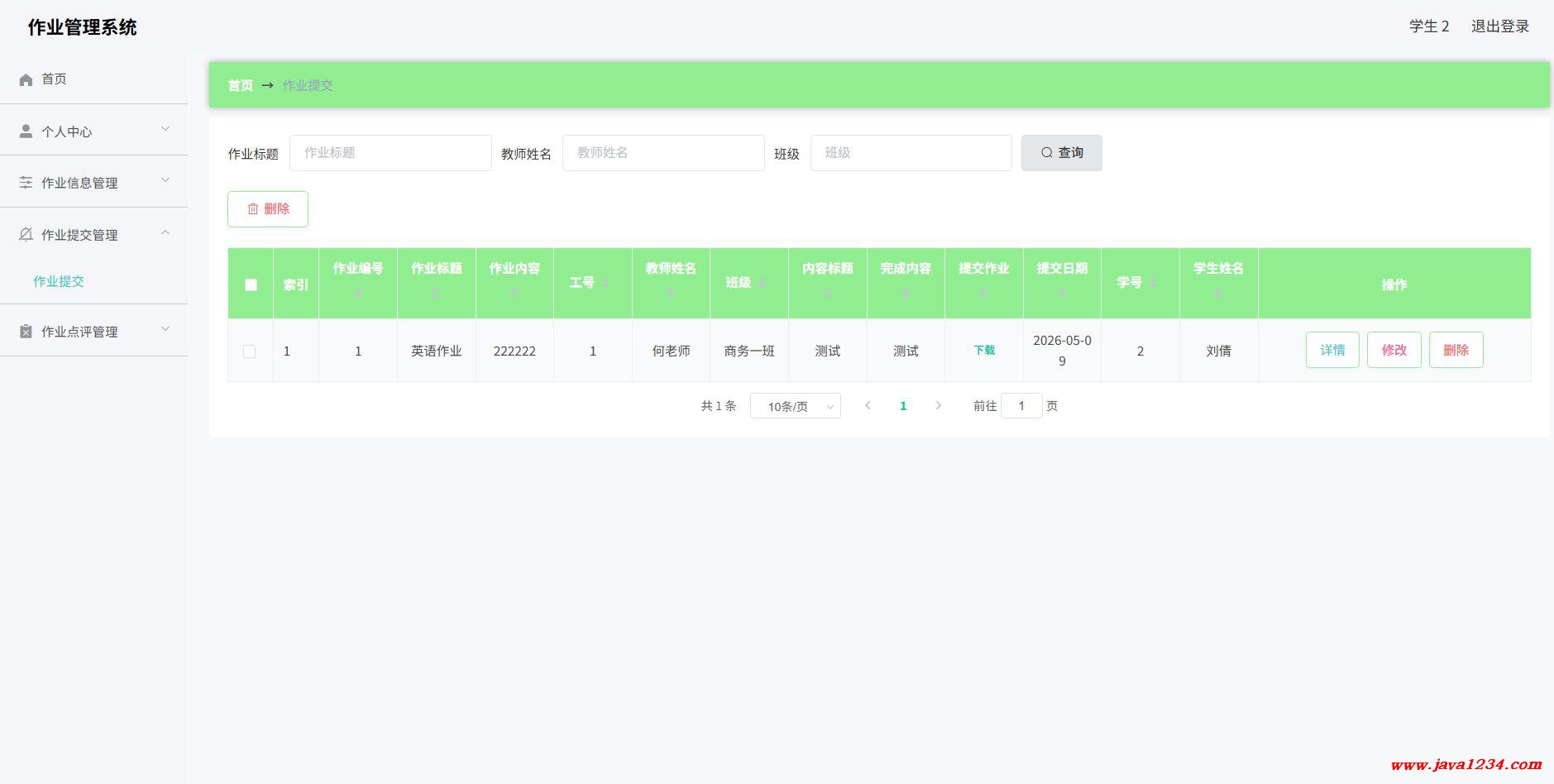 【免费】SpringBoot+Vue学生作业管理系统【Java毕业设计】下载
