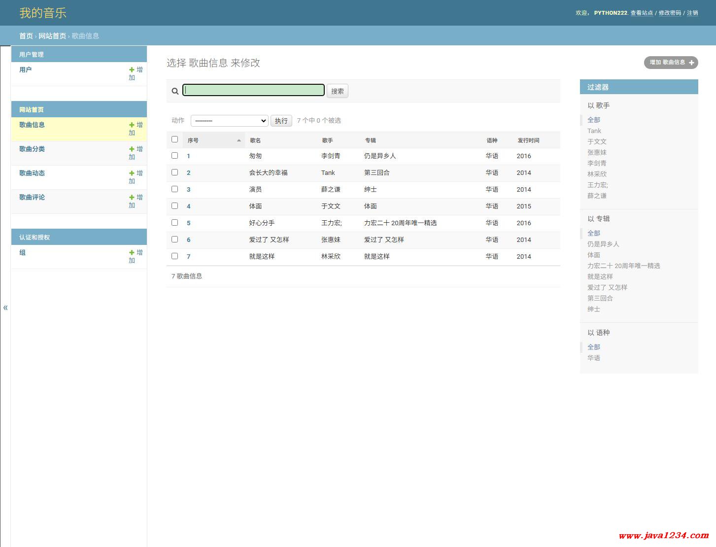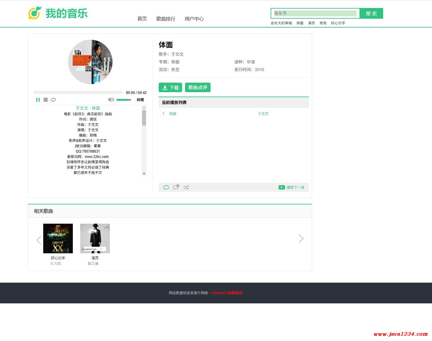 【免费】基于Python的在线音乐网站系统(后端Django)【Python毕业设计】下载