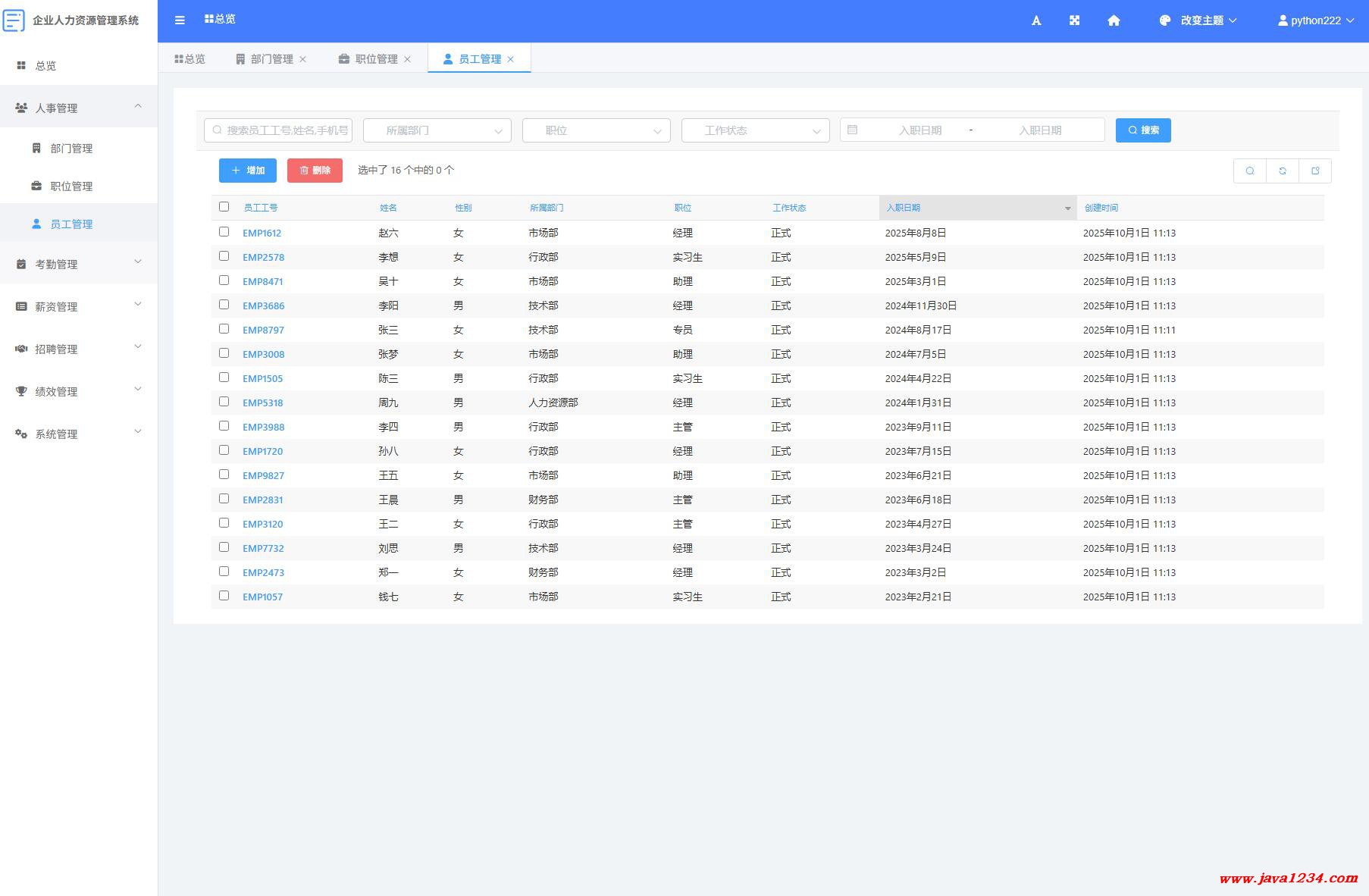 【免费】基于Python的Django企业人事(人力资源)HR管理系统【Python毕业设计】下载