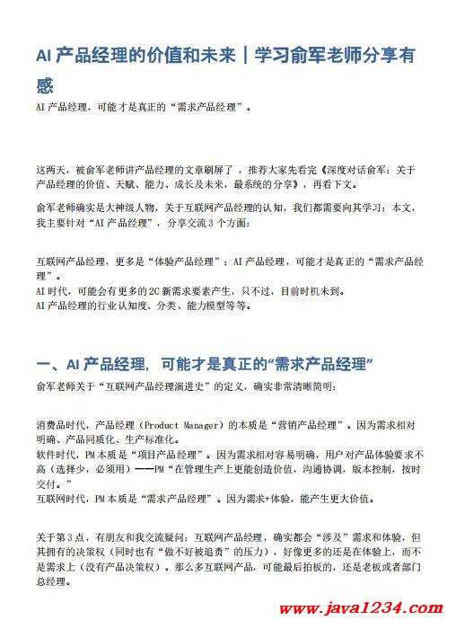 一、AlI产品经理,可能才是真正的“需求产品经理”俞军老师关于“互联网产品经理演进史”的定义,确实非常清晰简明: