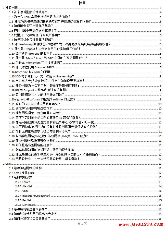 深度学习面试题-图像算法 DOC 下载