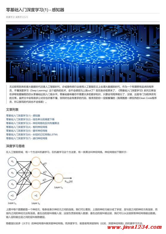 上图中每个圆圈都是一个神经元,每条线表示神经元之间的连接。我们可以看到,上面的神经元被分成了多层,层与层之间的神经元有连接,而