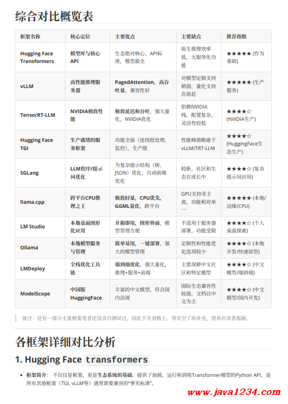所有其他框架(TGI, vLLM等)通常需要兼容的“事实标准”。框架优点: