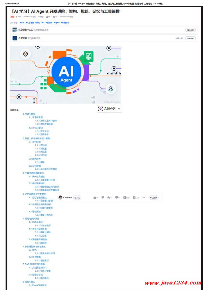 AI Agent 开发进阶:架构、规划、记忆与工具编排概述 PDF 下载