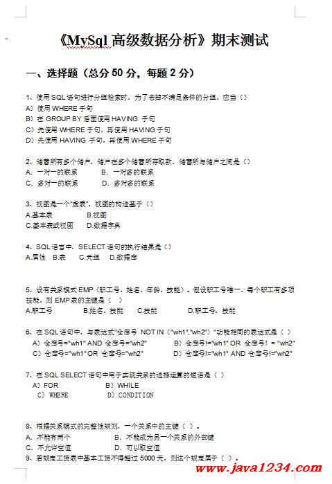 《MySql高级数据分析》期末测试 PDF 下载