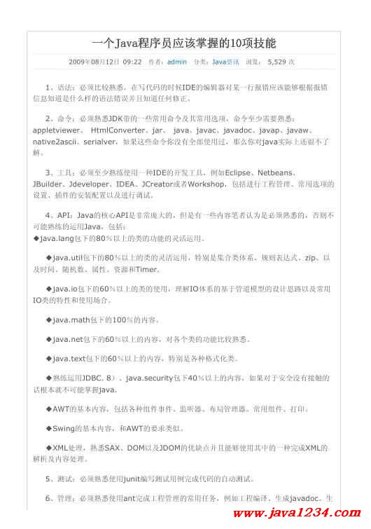 一个Java程序员应该掌握的10项技能 PDF 下载