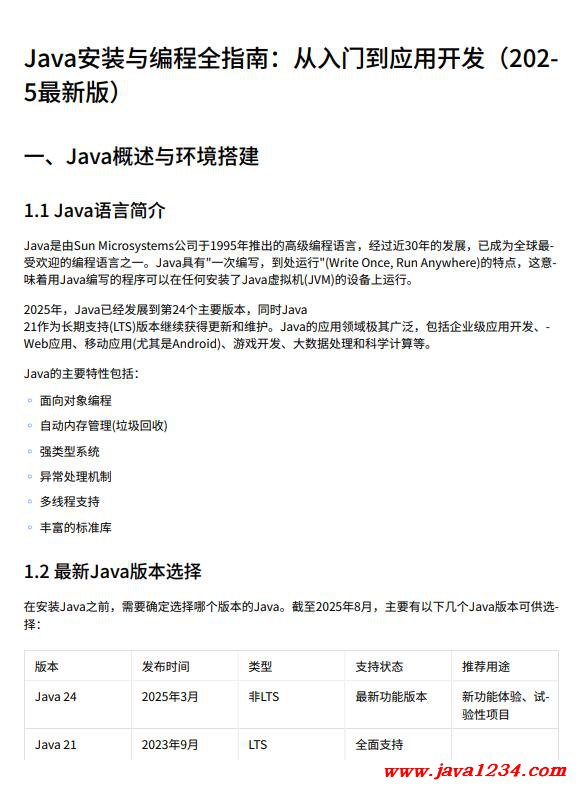 Java安装与编程全指南:从入门到应用开发(2025最新版)PDF 下载