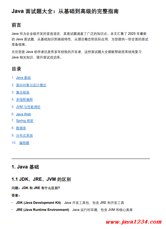 Java面试题大全:从基础到高级的完整指南 PDF 下载