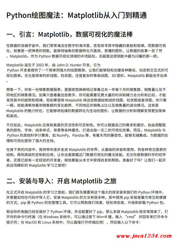 在接下来的内容中,我将带你逐步走进 Matplotlib 的世界,从基础的安装和使用,到各种常见图表的