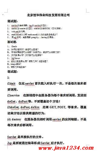北京恒华伟业科技发展有限公司Java笔试面试题 PDF 下载