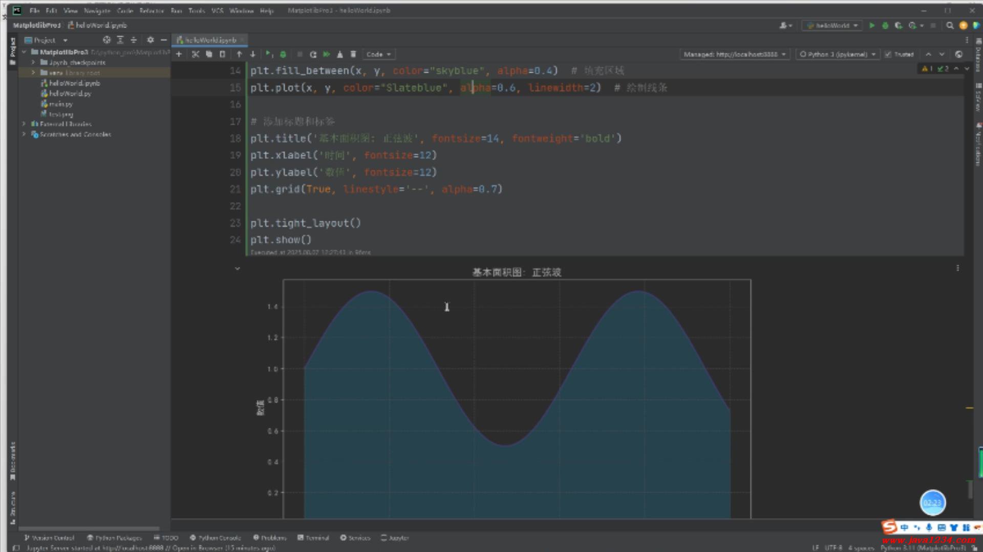 19_Matplotlib3视频教程_Matplotlib3 绘制面积图(Area) B站在线学习地址: https://www.bilibili.com/video/BV1UhtuzcEqX/ 高清视频+源码+文档领取: http://python222.com/post/7 相关截图: ![]() ![]() |