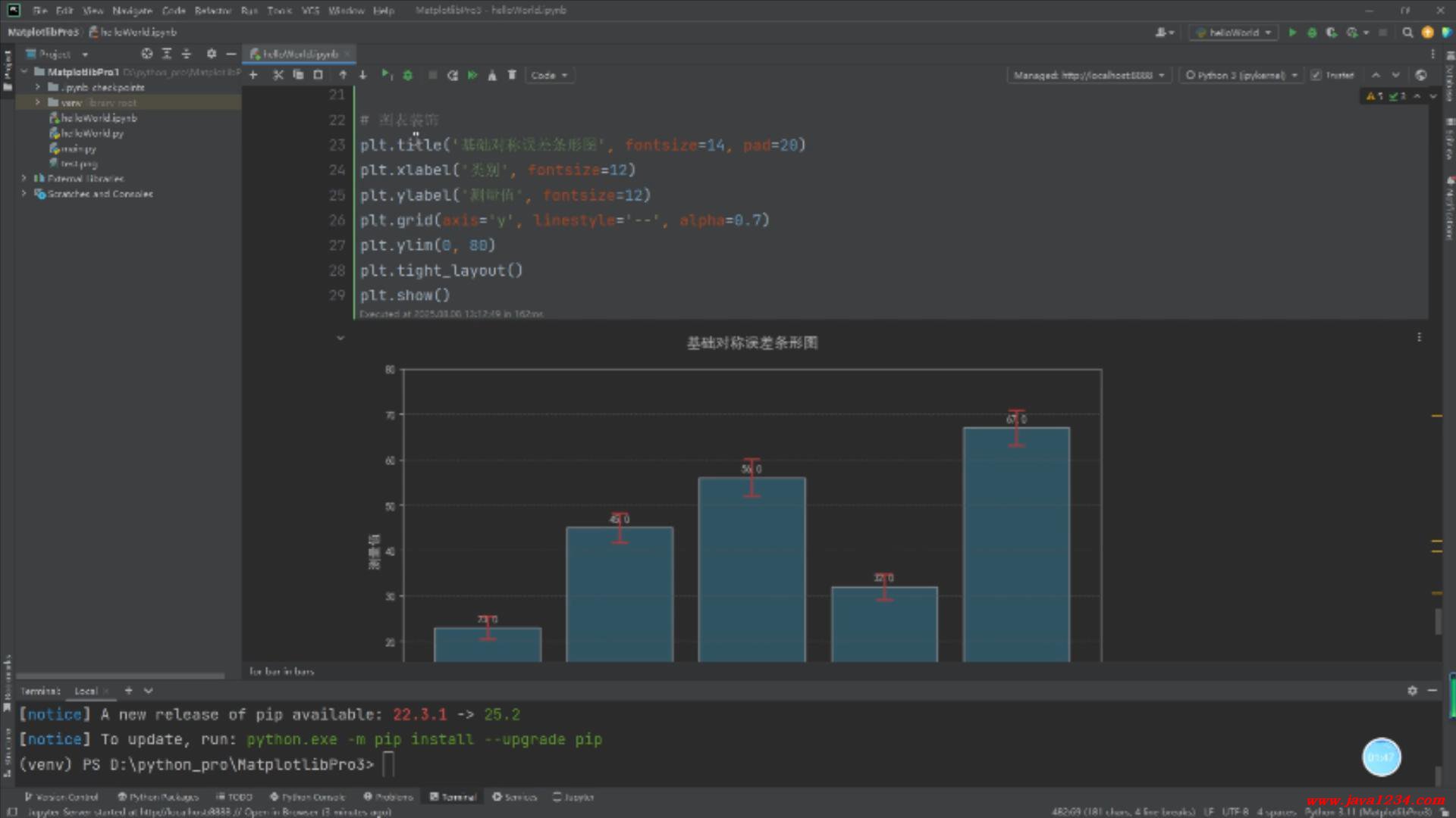 21_Matplotlib3视频教程_Matplotlib3 绘制误差条形图 B站在线学习地址: https://www.bilibili.com/video/BV1UhtuzcEqX/ 高清视频+源码+文档领取: http://python222.com/post/7 相关截图: ![]() ![]() |
