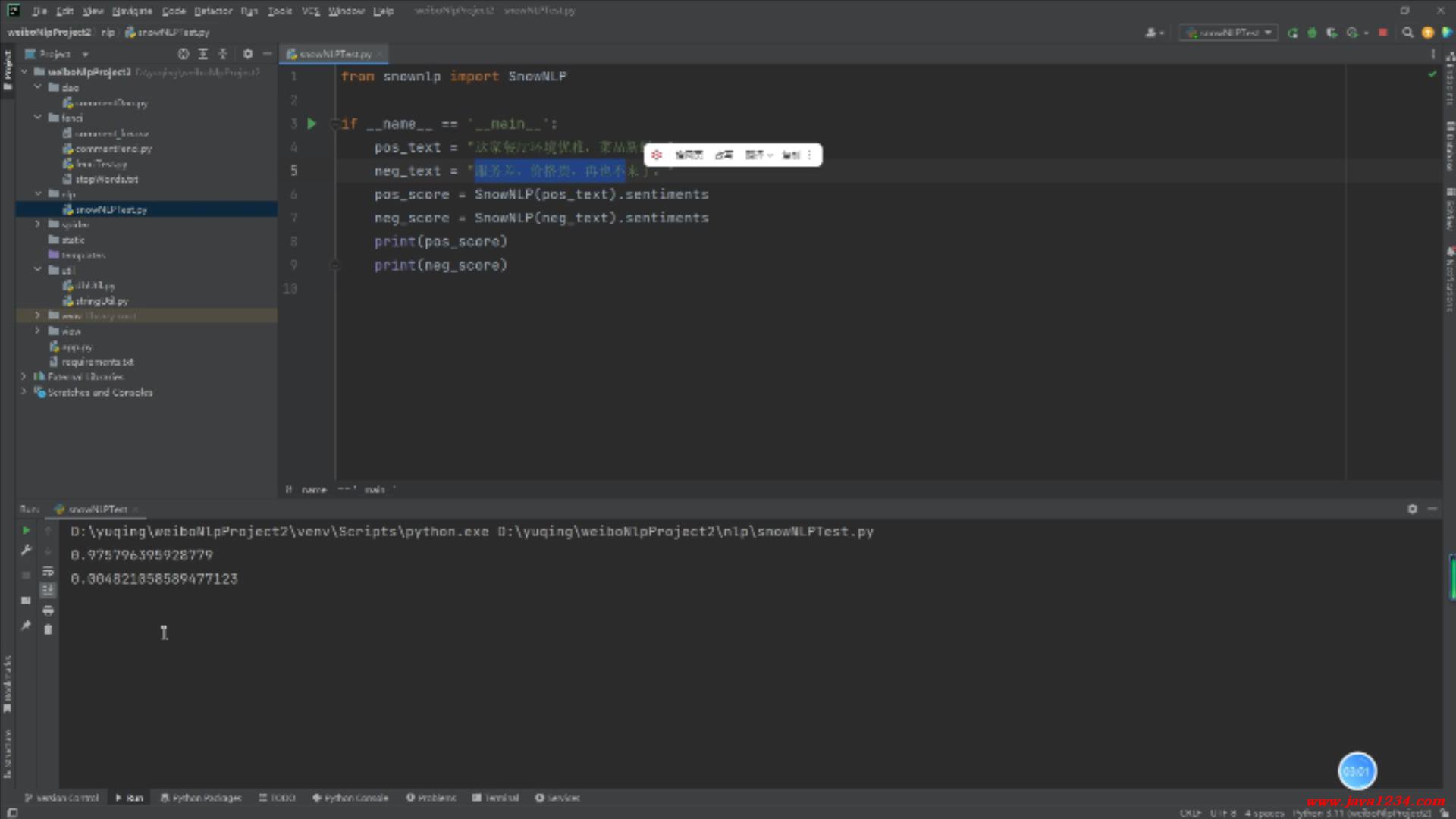 09_NLP舆情分析视频教程_snowNLP库实现中文情感分析 B站在线学习地址: https://www.bilibili.com/video/BV15MMfzhEXR/ 高清视频+源码+文档领取: http://python222.com/post/7 相关截图: ![]() ![]() |