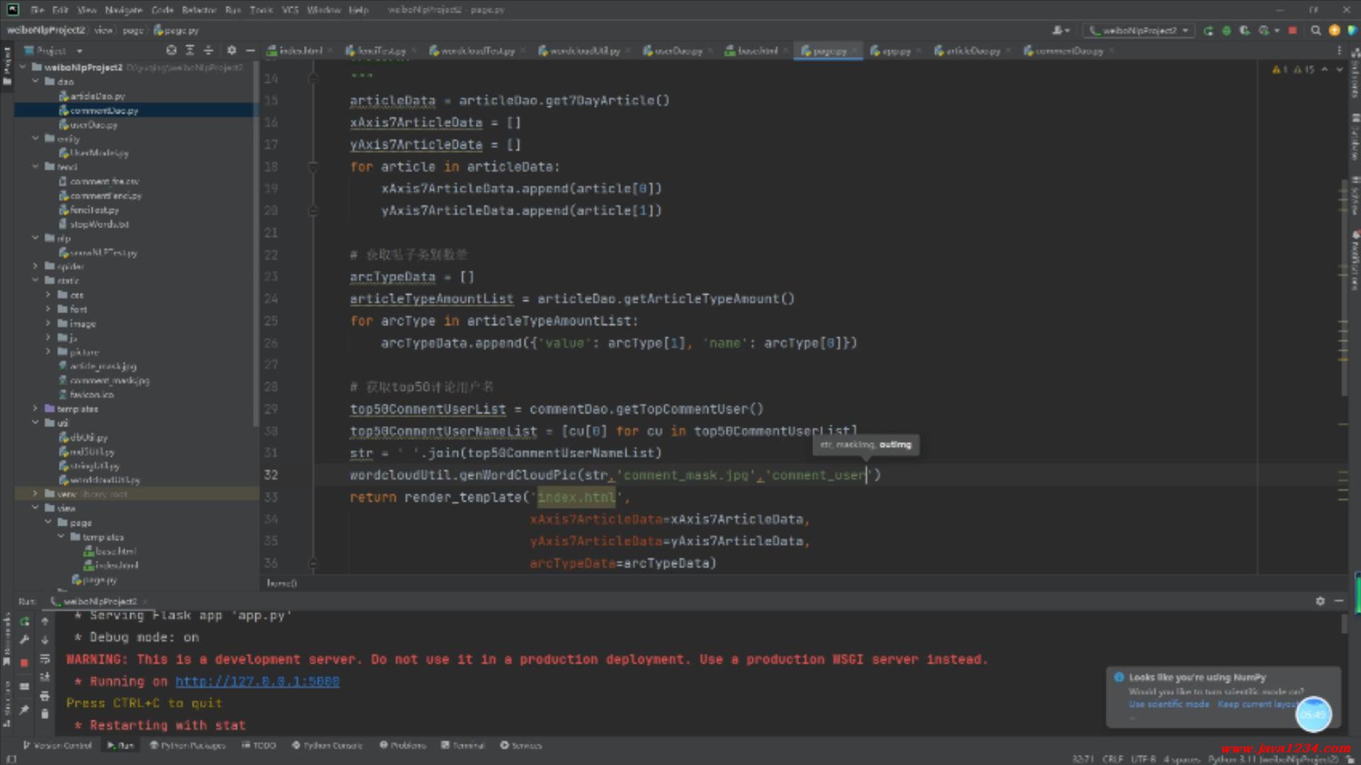 21_NLP舆情分析视频教程_主页-评论用户名词云图实现 B站在线学习地址: https://www.bilibili.com/video/BV15MMfzhEXR/ 高清视频+源码+文档领取: http://python222.com/post/7 相关截图: ![]() ![]() |