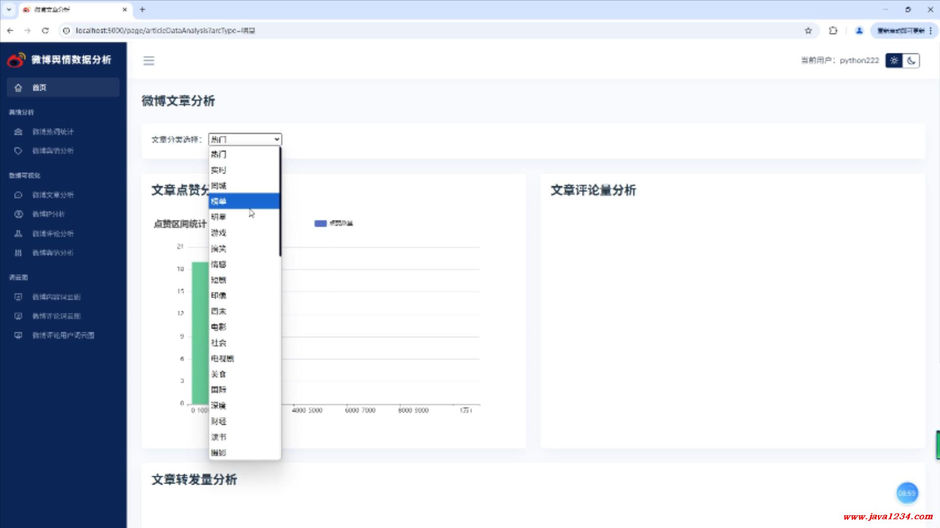 28_NLP舆情分析视频教程_微博文章数据可视化分析-点赞区间实现 B站在线学习地址: https://www.bilibili.com/video/BV15MMfzhEXR/ 高清视频+源码+文档领取: http://python222.com/post/7 相关截图: ![]() ![]() |