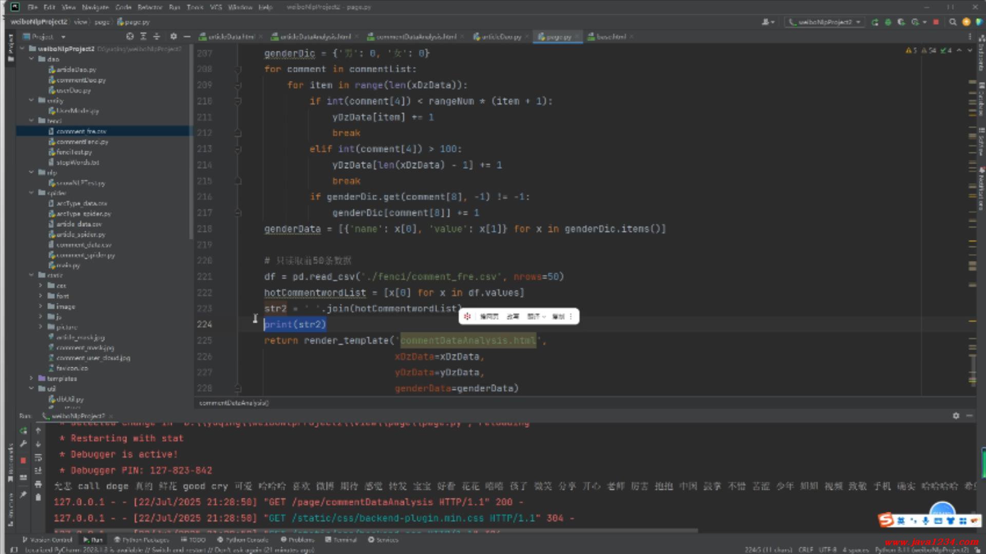 33_NLP舆情分析视频教程_微博评论数据可视化分析-用户评论词云图实现 B站在线学习地址: https://www.bilibili.com/video/BV15MMfzhEXR/ 高清视频+源码+文档领取: http://python222.com/post/7 相关截图: ![]() ![]() |