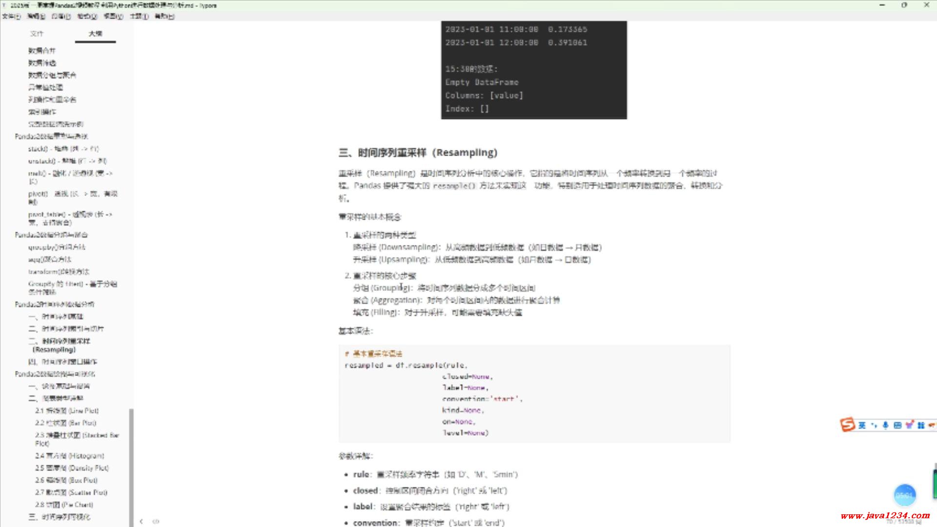 35_Pandas2视频教程_Pandas2时间序列数据分析 B站在线学习地址: https://www.bilibili.com/video/BV1wNZ1YnEvp/ 高清视频+源码+文档领取: http://python222.com/post/7 相关截图: ![]() ![]() |