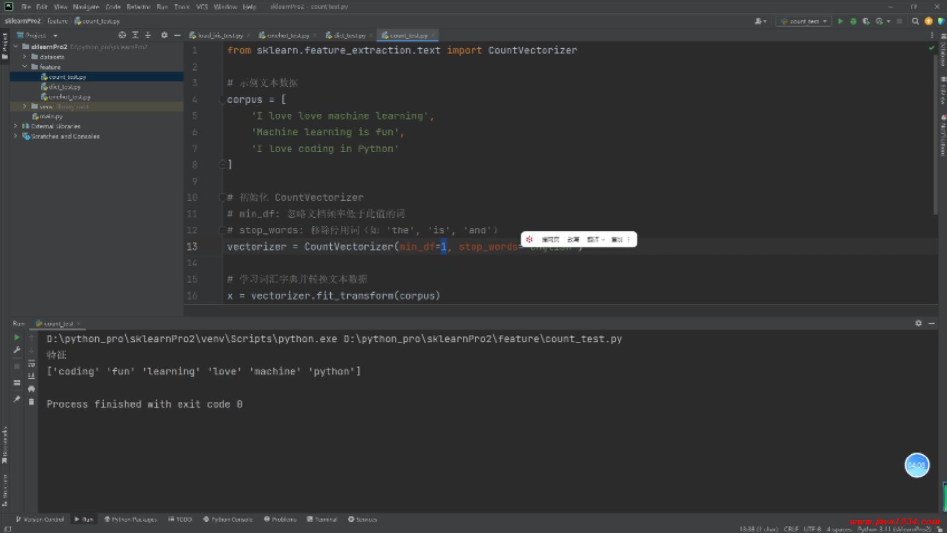 10_Scikit-learn视频教程_词袋模型(英文文本处理) - CountVectorizer B站在线学习地址: https://www.bilibili.com/video/BV11reUzEEPH/ 高清视频+源码+文档领取: http://python222.com/post/7 相关截图: ![]() ![]() |