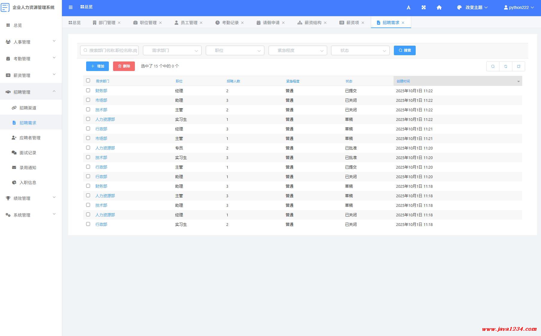 【免费】基于Python的Django企业人事(人力资源)HR管理系统【Python毕业设计】下载