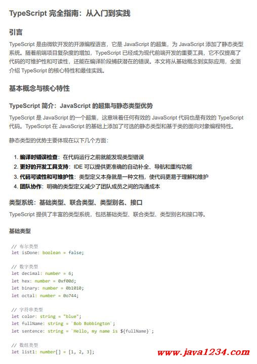 TypeScript 提供了丰富的类型系统,包括基础类型、联合类型、类型别名和接口等。