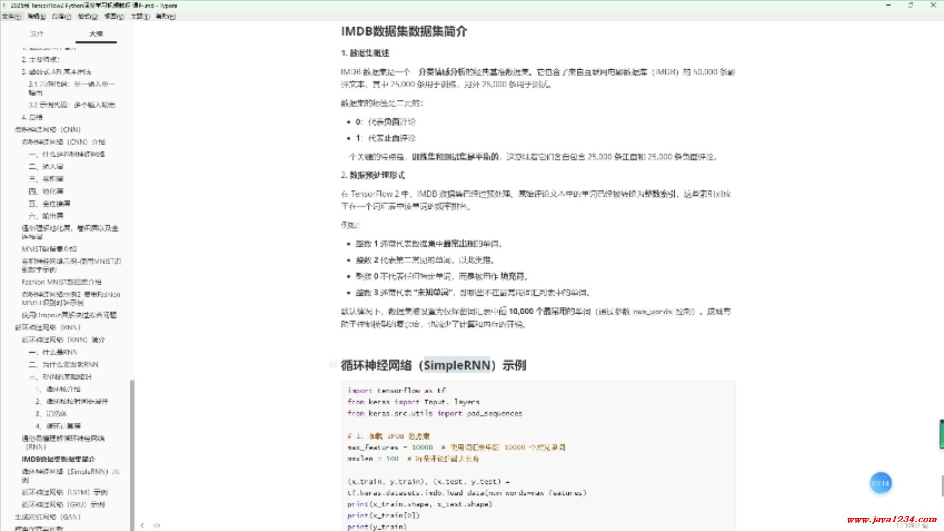 24_TensorFlow2视频教程_循环神经网络(SimpleRNN)示例 B站在线学习地址: https://www.bilibili.com/video/BV1X5xVz6E4w 高清视频+源码+文档领取: http://python222.com/post/7 相关截图: ![]() ![]()  |