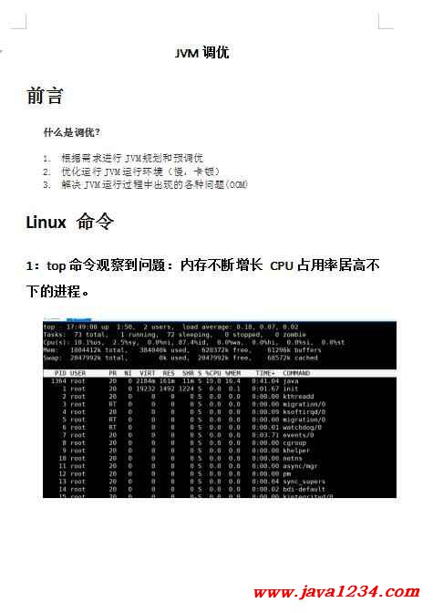 1:top命令观察到问题:内存不断增长 CPU占用率居高不下的进程。