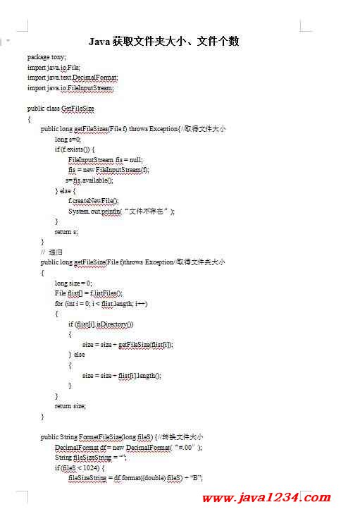 Java获取文件夹大小、文件大小,文件个数 PDF 下载
