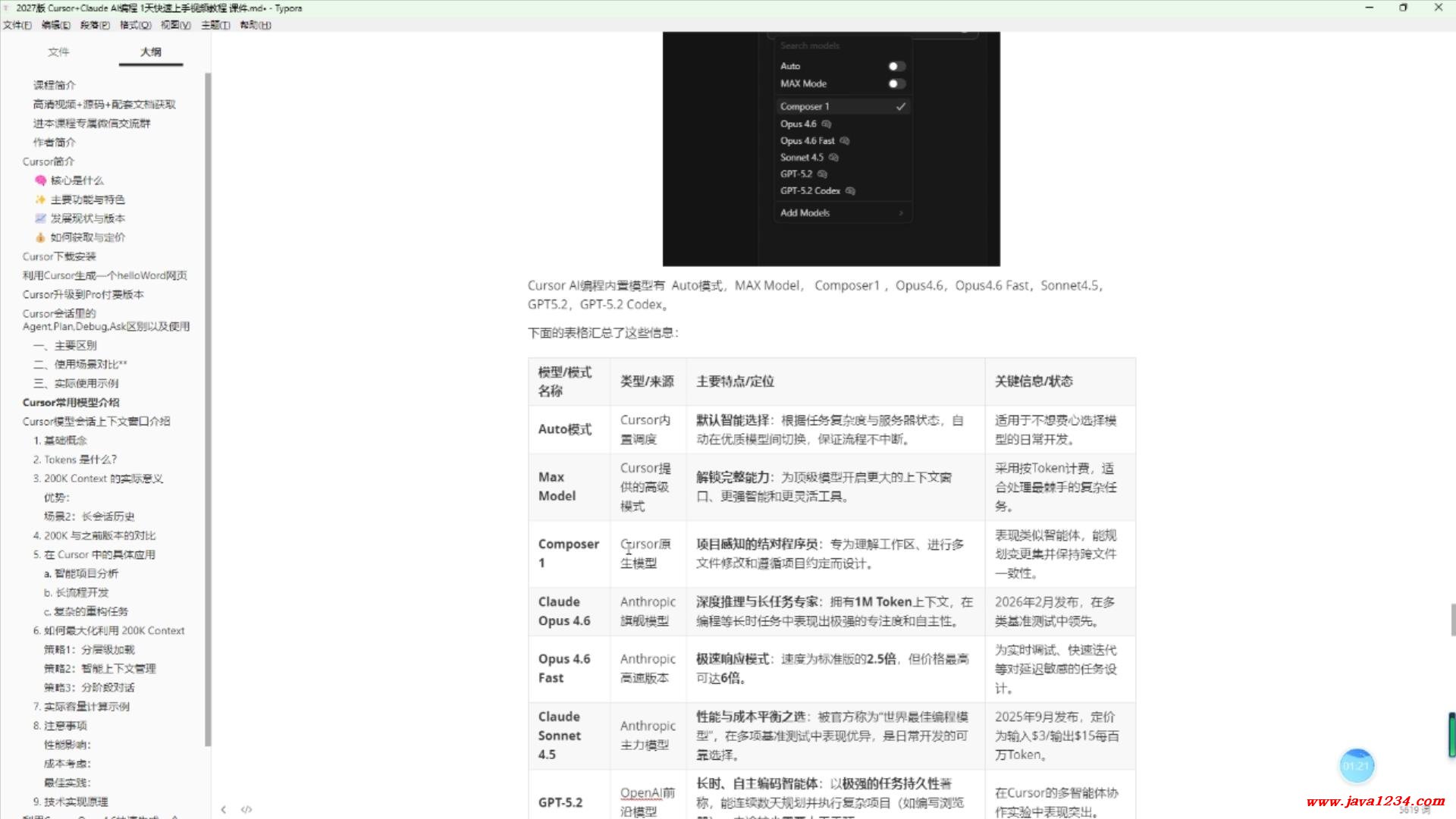 06_Cursor+Claude AI编程1天快速上手视频教程_Cursor常用模型介绍 B站在线学习地址: https://www.bilibili.com/video/BV1KocTzHE3Z/ 高清视频+源码+文档领取: https://www.java1234.com/ailuxian.html 相关截图: ![]() ![]() |