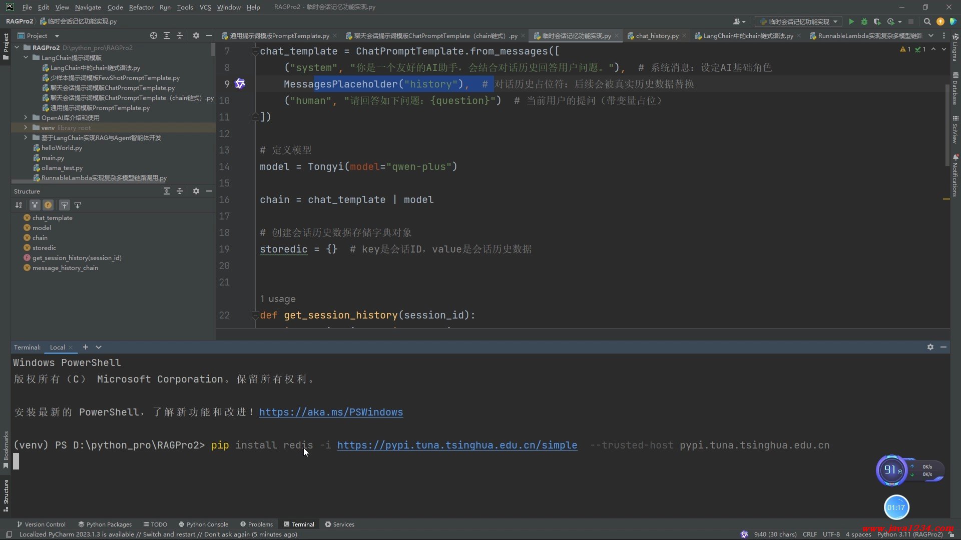 20_基于LangChain的RAG与Agent智能体开发_持久化会话记忆功能实现(RunnableWithMessageHistory+RedisChatMessageHistory) B站在线学习地址: https://www.bilibili.com/video/BV1z2cBzbEpE/ 高清视频+源码+文档领取: https://python222.java1234.com/post/7 相关截图: ![]() ![]() |