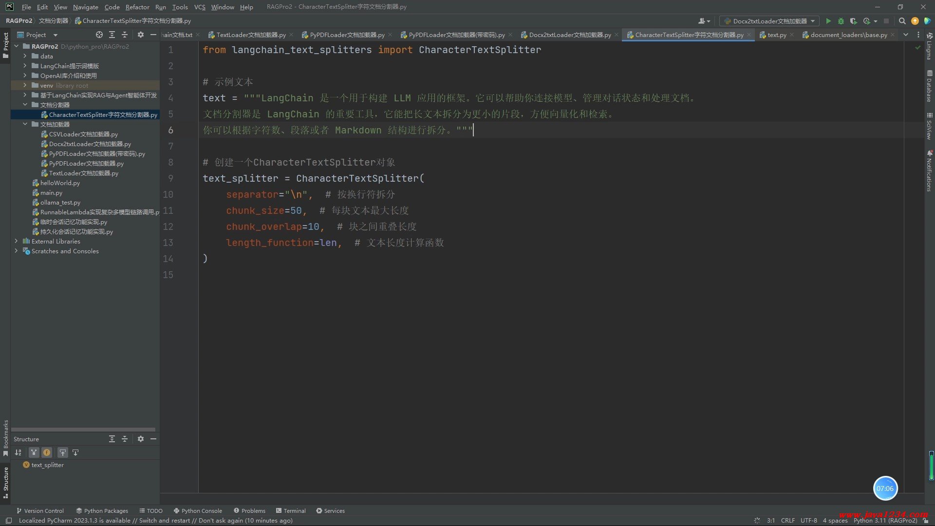 25_基于LangChain的RAG与Agent智能体开发_CharacterTextSplitter字符文档分割器 B站在线学习地址: https://www.bilibili.com/video/BV1z2cBzbEpE/ 高清视频+源码+文档领取: https://python222.java1234.com/post/7 相关截图: ![]() ![]() |