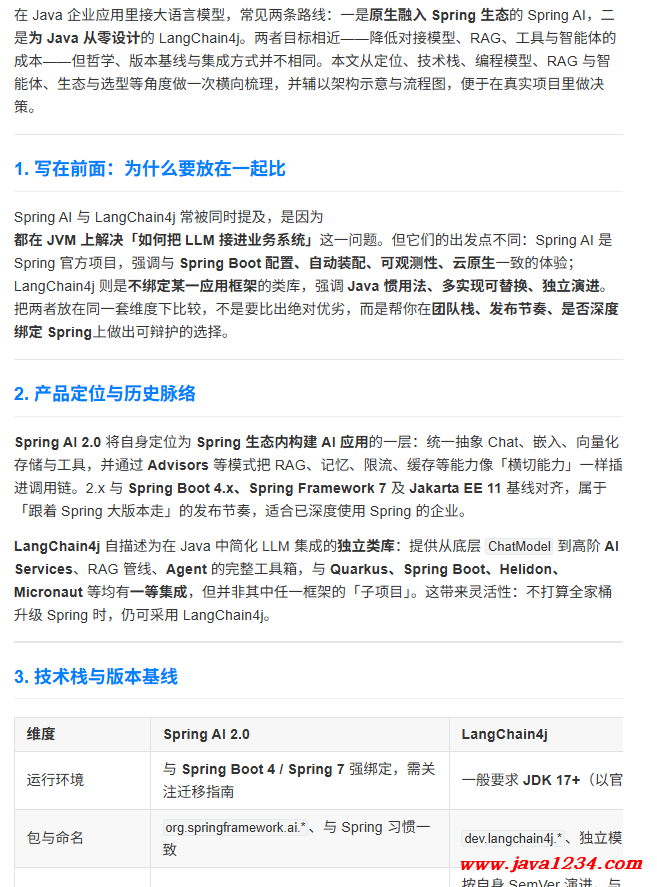 Spring AI 2.0 vs LangChain4j,怎么选?