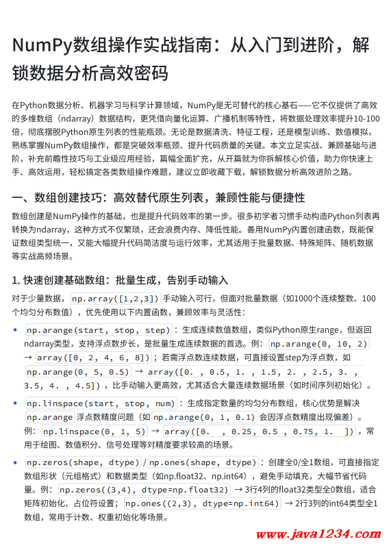 熟练掌握NumPy数组操作,都是突破效率瓶颈、提升代码质量的关键。本⽂⽴⾜实战、兼顾基础与进