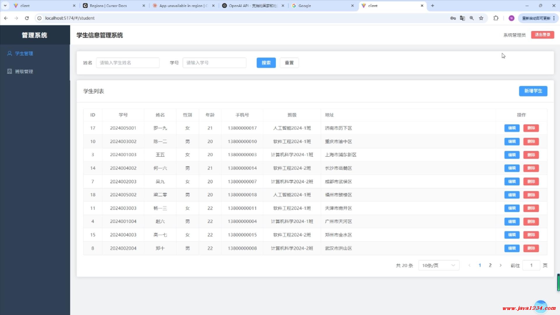 08_利用Cursor快速开发一个Java项目 -SpringBoot4+Vue3+Vite的学生信息管理系统 B站在线学习地址: https://www.bilibili.com/video/BV1KocTzHE3Z/ 高清视频+源码+文档领取: https://www.java1234.com/ailuxian.html 相关截图: ![]() ![]() |