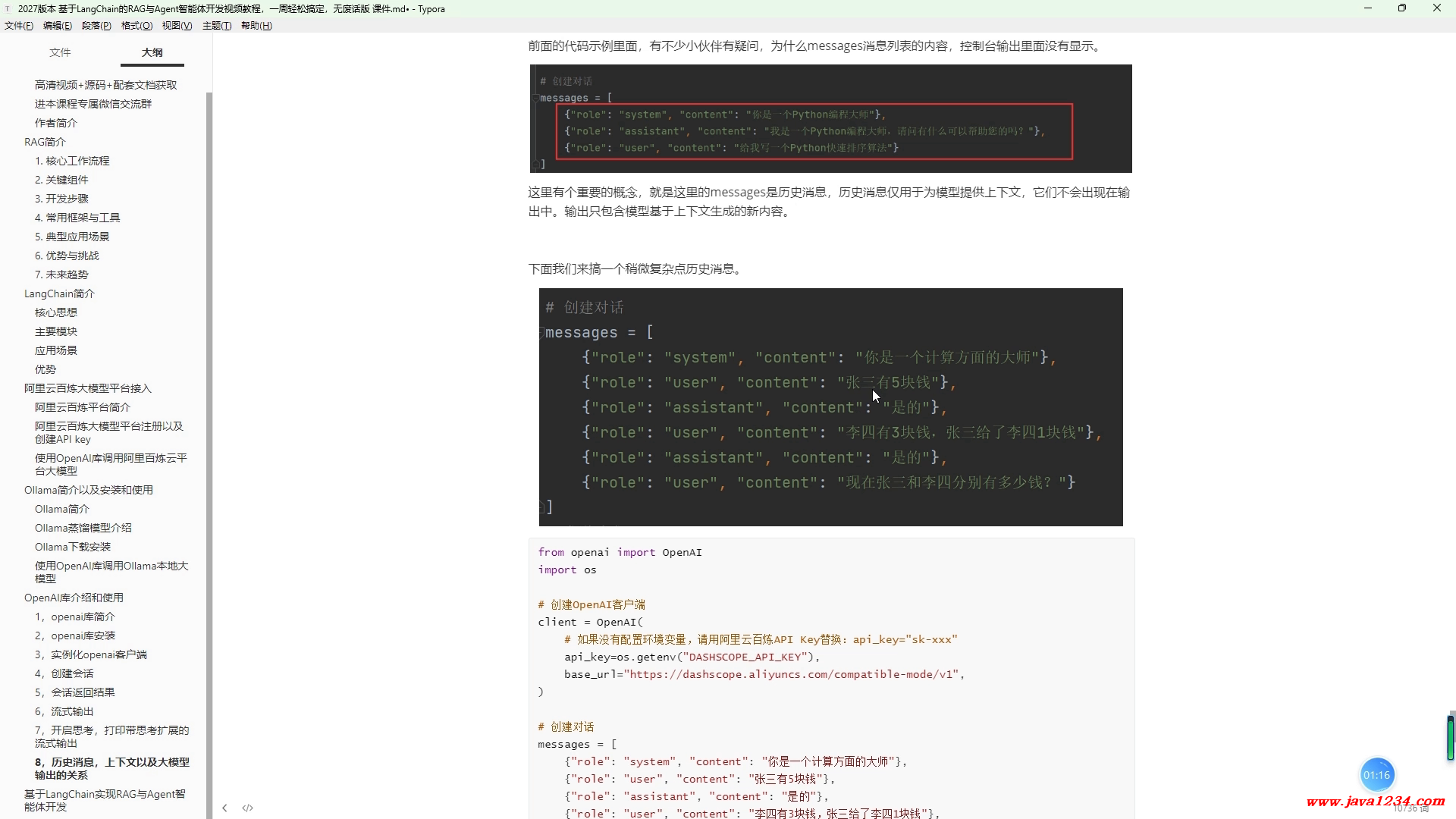 08_基于LangChain的RAG与Agent智能体开发_历史消息,上下文以及大模型输出的关系 B站在线学习地址: https://www.bilibili.com/video/BV1z2cBzbEpE/ 高清视频+源码+文档领取: https://python222.java1234.com/post/7 相关截图: ![]() ![]() |