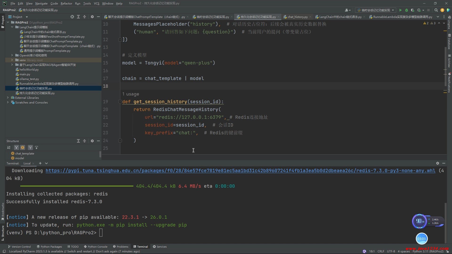 20_基于LangChain的RAG与Agent智能体开发_持久化会话记忆功能实现(RunnableWithMessageHistory+RedisChatMessageHistory) B站在线学习地址: https://www.bilibili.com/video/BV1z2cBzbEpE/ 高清视频+源码+文档领取: https://python222.java1234.com/post/7 相关截图: ![]() ![]() |